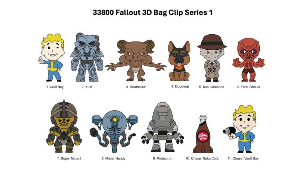 This blind bag series features some of Fallout’s most iconic characters and designs, including Vault Boy, Dogmeat, Deathclaw, power armor, and more. Each bag clip is a surprise, making every unboxing feel like opening a Vault-Tec supply crate. Perfect for backpacks, keys, or display, these bag clips let you take a piece of the wasteland wherever you go.