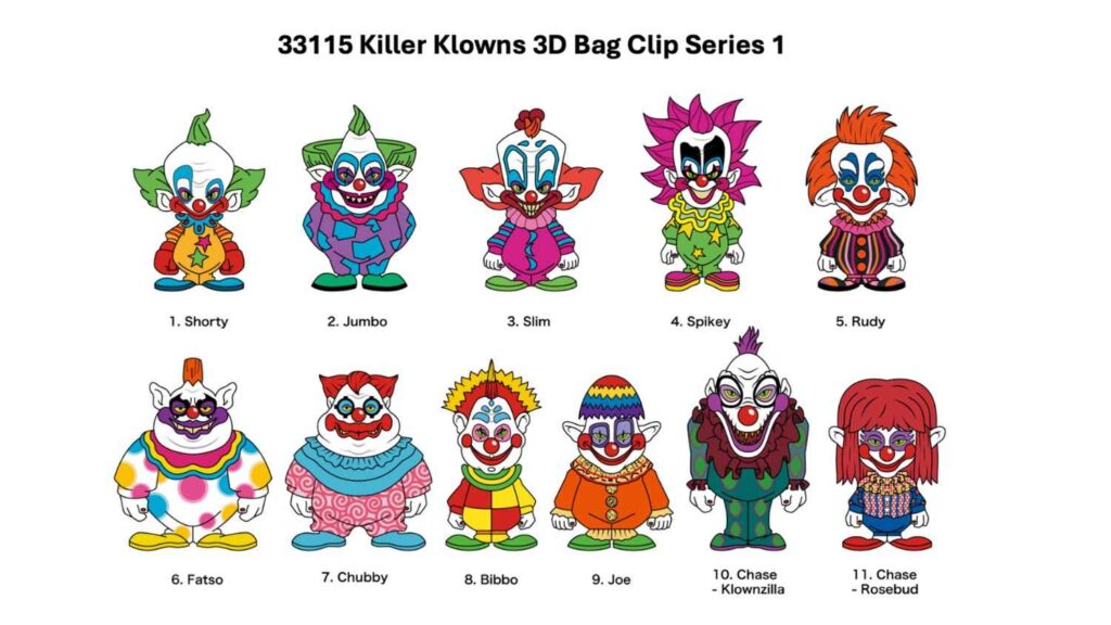 The Killer Klowns 3D Foam Bag Clip Series 1 takes you straight back to that wild cult-classic energy, popcorn guns and cotton candy cocoons included. If you’re a horror nerd, this one’s pure nostalgia gold.