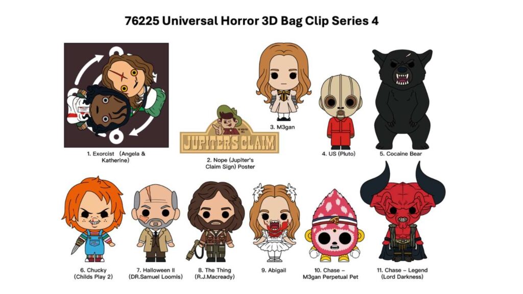 The Universal Horror 3D Foam Bag Clip Series 4 is packed with big-screen scares, featuring The Exorcist, M3GAN, The Thing, US, Cocaine Bear, and more. Each one captures a modern horror classic in Monogram’s signature collectible style.