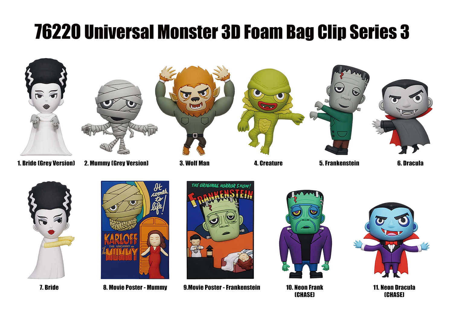 Universal Monsters 3D Foam Bag Clip, Series 3