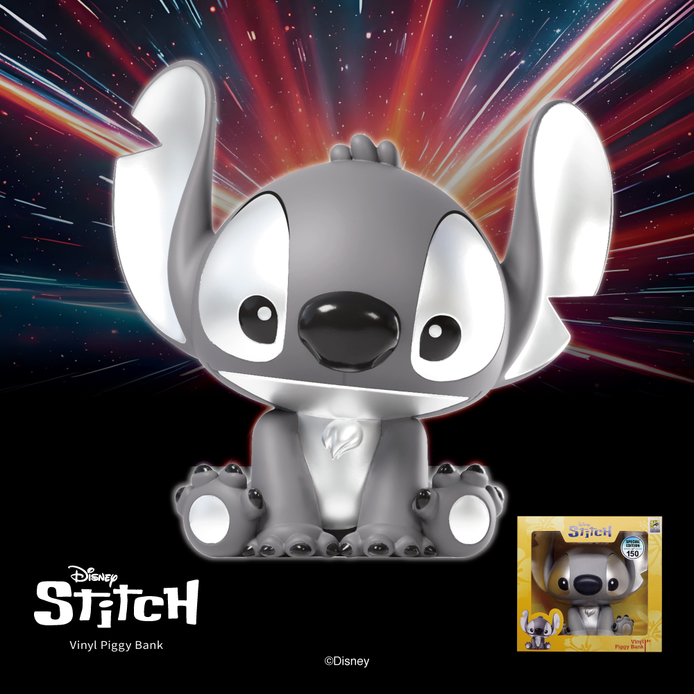 Get ready for some galactic savings mischief with Monogram International’s Stitch Vinyl Piggy Bank, debuting exclusively at San Diego Comic-Con Booth #3645! Created in collaboration with Disney, this collectible features everyone’s favorite blue alien, Stitch, striking a playful pose while guarding your spare change with out-of-this-world charm.