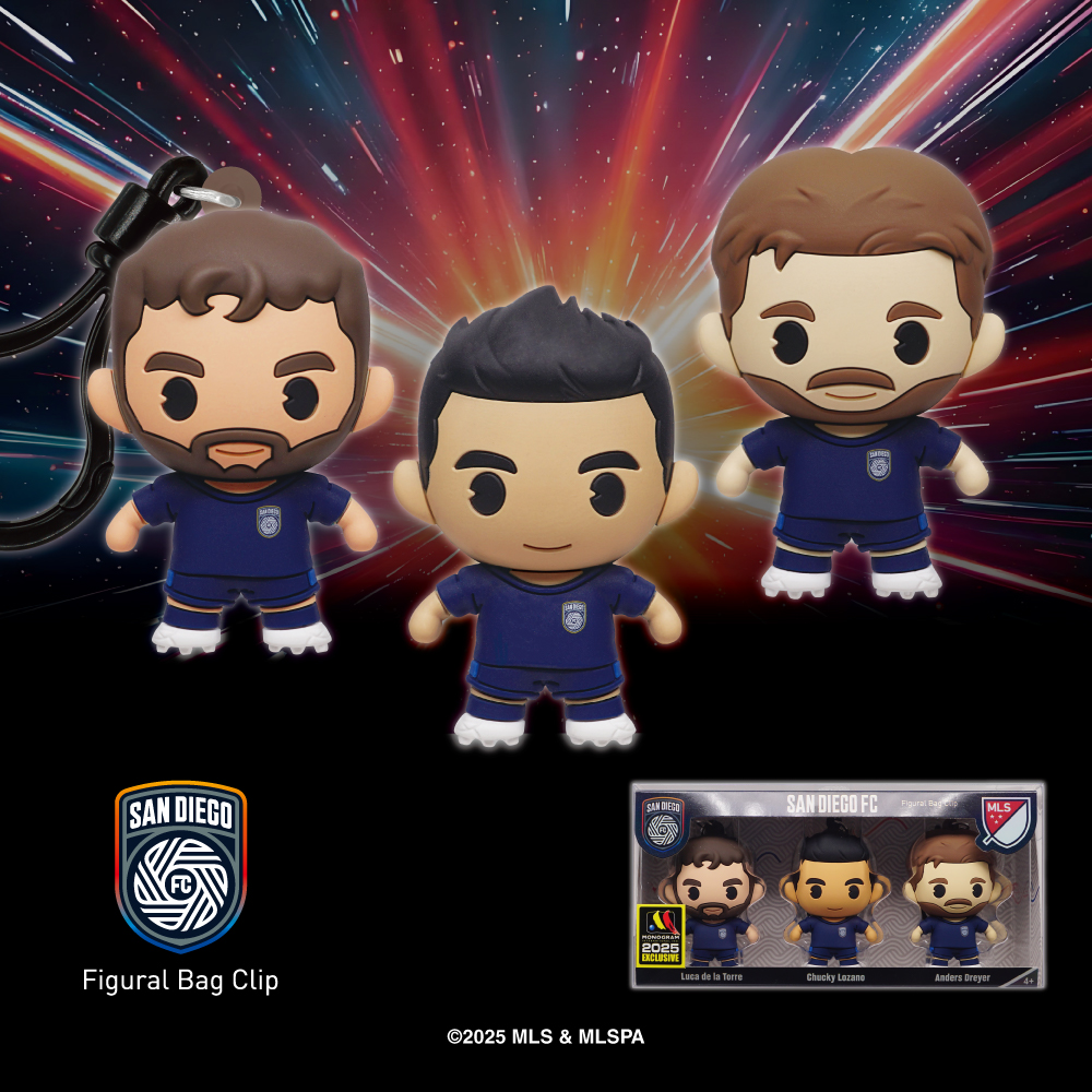 Kick off Comic-Con with Monogram International’s MLS Players 3D Foam Bag Clip 3-Pack, a SDCC/Monogram summer exclusive available at Booth #3645! Created in collaboration with Major League Soccer (MLS), this collectible set features Chucky Lozano, Luca de la Torre, and Anders Dreyer—each brought to life in Monogram’s signature 3D foam style.